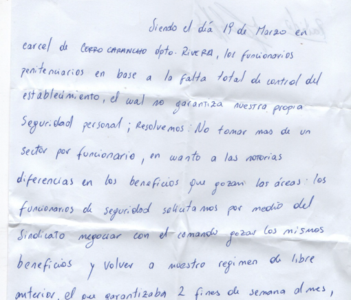 Petitorio introducido por el Operador Germán Gutierrez ante el Ministerio de Salud Pública, para declarar el trabajo del sector penitenciario como insalubre.